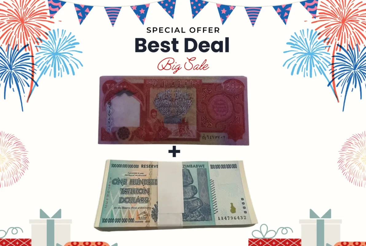 40 Notes of 25K Iraqi Dinar + 10 Notes of 100T Zimbabwe Dollar (For Collectors)